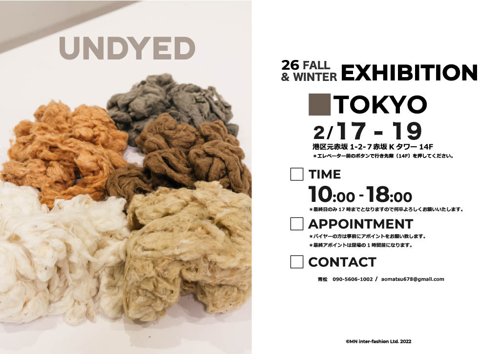 Tokyo, 2/17-2/19※MNインターファッション東京本社14階(元赤坂Kタワー)にて 2/17(火)-2/19(木)の3日間、
