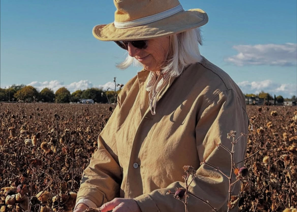 生物・昆虫学者であり、オーガニックコットンの量産を最初に成功させたSALLY FOX女史。古代の茶色い有色綿に出会い、その性質から病害虫への耐性を見抜き、このコットンが広まれば無農薬かつ染料や水、エネルギーをも減らすことができるのではと考え、40年以上にわたりコットンブリーダーとして今もなお、カリフォルニアを拠点とし精力的に活動しています。UNDYEDの綿花使用プログラムは彼女が手掛けたコットンを色毎にブレンド比率を調整し製造しております。